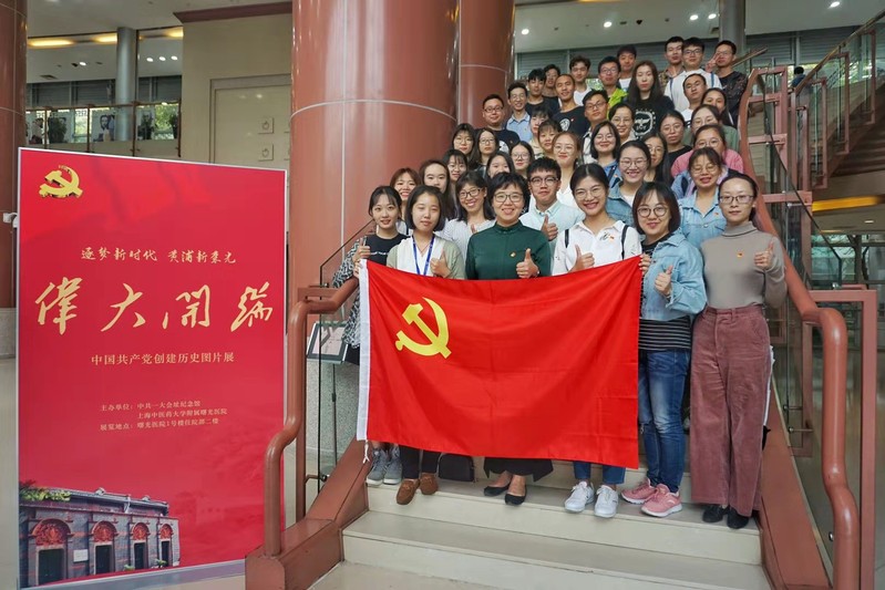 为共同庆祝新中国成立70周年,扎实推进“不忘初心、牢记使命”主题教育,2019年10月12日上海中医药大学收米直播 研究生党总支的全体成员们,在收米直播 党委副书记沈漫老师带领下一同来到了曙光医院住院部2楼,参观《伟大开端——中国共产党创建历史》。