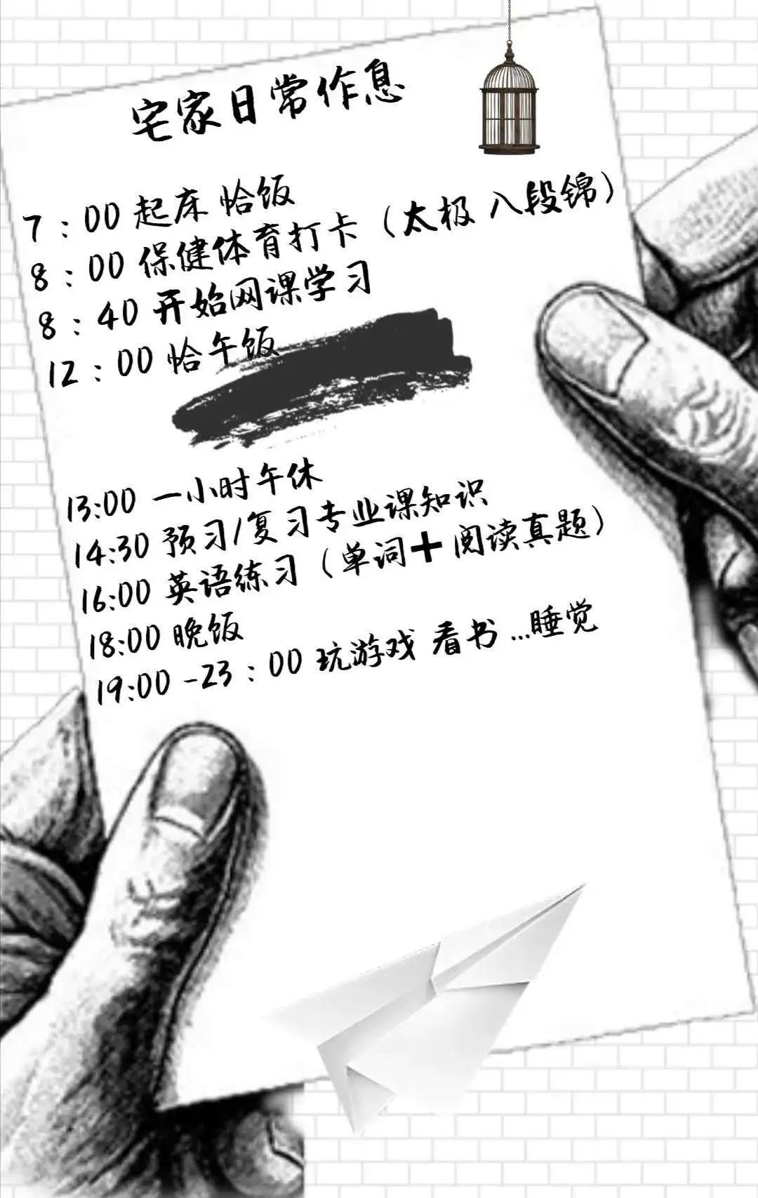 大家的作息表都十分精美,内容充实。然而最重要的是,大家是否严格自律,能够按照作息表进行学习生活,在活动的最后,希望同学们都能拥有充实而丰富的线上学习和线下生活,开始这个不平凡的新学期吧!