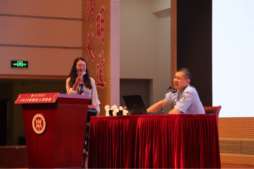 讲座开始前,刘宁警官播放了安全教育宣传片——“校园无诈 一分钟识破刷单兼职诈骗”。视频中模拟了学生在刷单兼职遭遇诈骗案件的场景,对初入大学生活的新生们起到了深刻的警示作用。