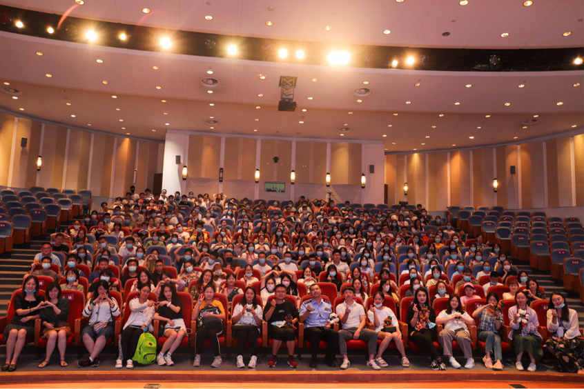 通过一个小时的讲座,新生们对潜在的安全隐患有了比较全面的认识和了解。讲座现场,同学们积极地参与互动,刘宁警官也用生动幽默的语言和案例,强调了校园安全的重要性,给同学们树立了防范意识。讲座结束后,刘宁警官同各位莅临现场的老师以及全体新生在报告厅留下了合照。