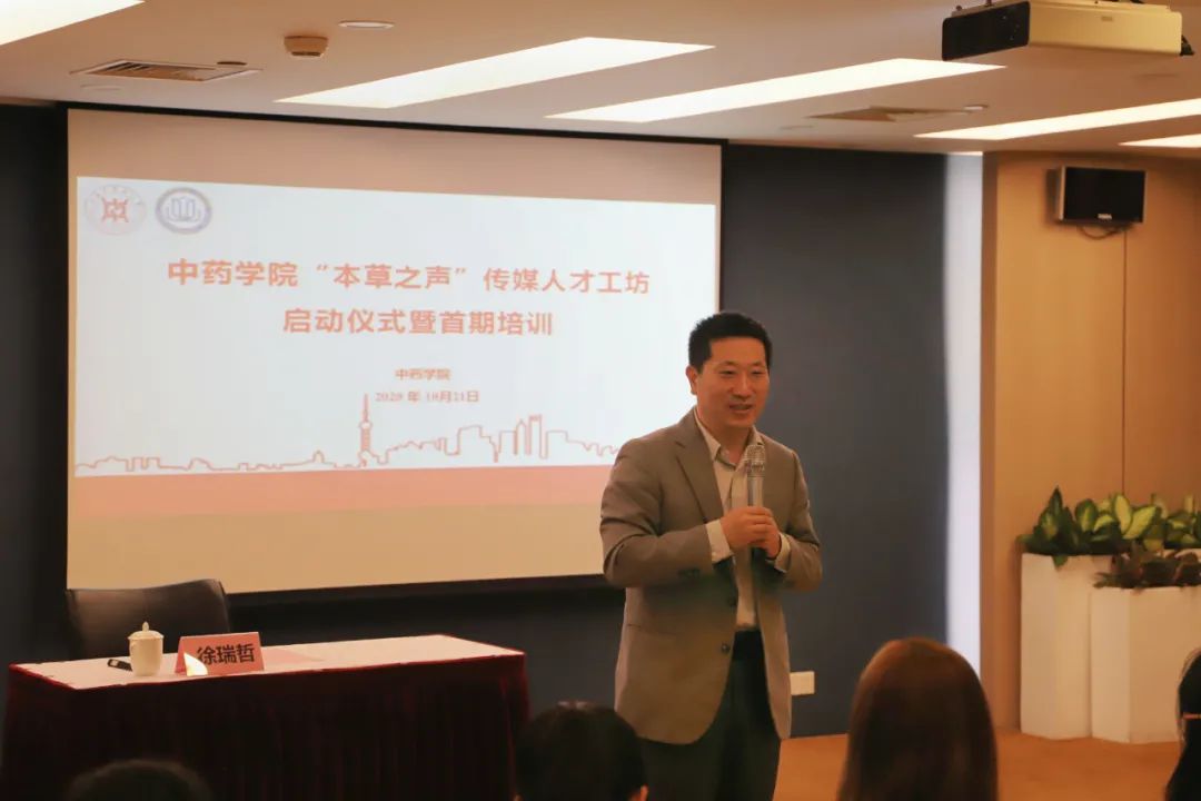 为了实现收米直播 综合育人的政策方针,进一步提高收米直播 学生会骨干和各班级宣传队伍的能力建设,培养一出只高水平高能力的传媒队伍,收米直播 “本草之声”传媒人才工坊于2020年10月21日下午三点在国教楼3楼会议中心召开第一期培训活动。解放日报主任记者、第一批首席记者、上观新闻教育栏目主编徐瑞哲应邀参与培训,收米直播 党委书记李医明、收米直播 党委副书记沈漫、辅导员张雯怡、胡志强出席本次活动。本次培训活动由辅导员张雯怡主持。