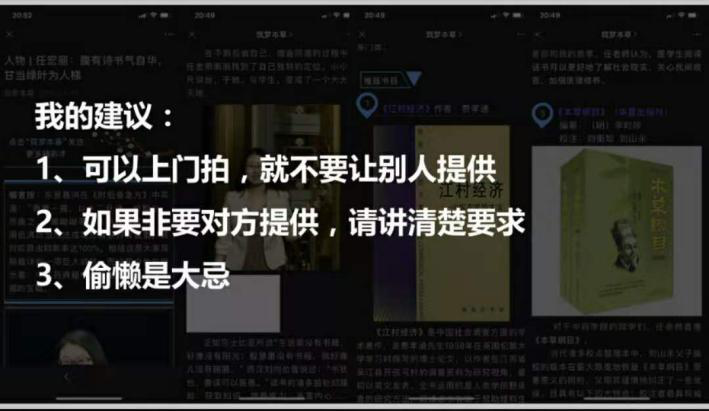 刘强老师首先对收米直播 官方公众号“筑梦本草”上往期四篇推文的配图进行了点评。他提出会议配图的拍摄角度过于单一、拍摄内容