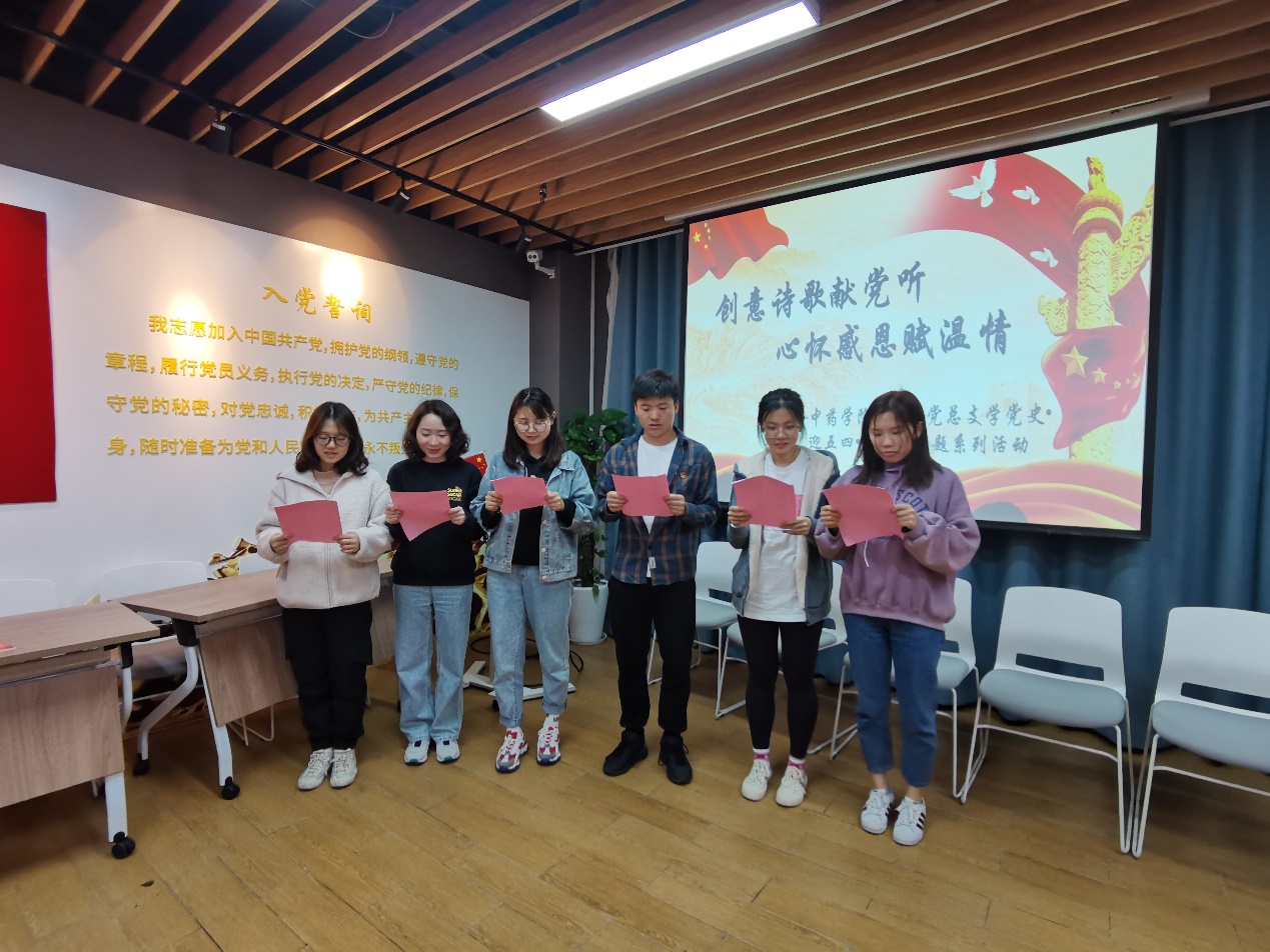 迎百年华诞,学辉煌党史。为响应习近平总书记开展党史学习教育的号召,收米直播 研究生党总支带领全体研究生以诗歌的形式表达了对党百年华诞真挚的礼赞和深深的祝福,同学们以诗言志、以诗述情,一首首原创诗歌动情地讲述了中国共产党风雨兼程一百年的辉煌历史,也充分体现了同学们学习党史的激情与热情。