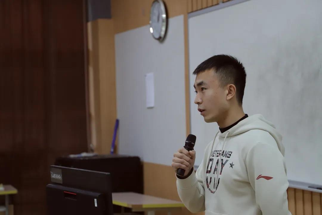 在齐老师对征兵政策的细致解读之后,秦超逸学长着重从个人的发展、军营的风采两个角度向同学们讲述了自己入伍的感受和在军营的生活。秦学长鼓励同学们勇敢选择参军,并以过来人的经验告诉同学们入伍后不仅能强健体魄、学习一定的技能,更能在未来的发展上有更多的选择,同时也能享受一定的优待政策。接着,秦学长向同学们展示了自己的军旅生活。虽然军营生活要求严苛,但能够提升个人素质。军营里举办的联谊活动、跟战友们建立的深厚情谊——在秦学长的讲述下,军营生活并不枯燥,而丰富多彩。最后,秦学长以两个拍摄平时训练的小视频结束了他对自己军旅生活的介绍。