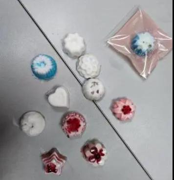 志愿者们耐心地为阳光之家的朋友们指导制作细节:加皂基、加色素、香精、中药材、搅拌均匀、刮去多余皂基,使底部平整、将药皂移至阳台冷却。一步步慢慢跟进,“星星们”逐渐加入其中,一个一个的模具被逐步填满,就像此刻彼此的内心一样不断地被对方所占据。