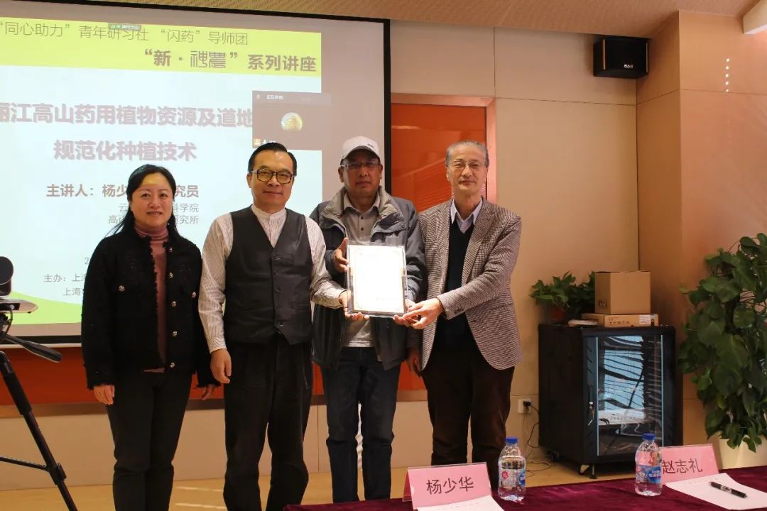 高山经济植物研究所杨少华研究员主讲,开讲前,徐宏喜院长为杨少华颁发“新农科”产教融合教学共同体专家聘书,赵志礼教授共同见证。