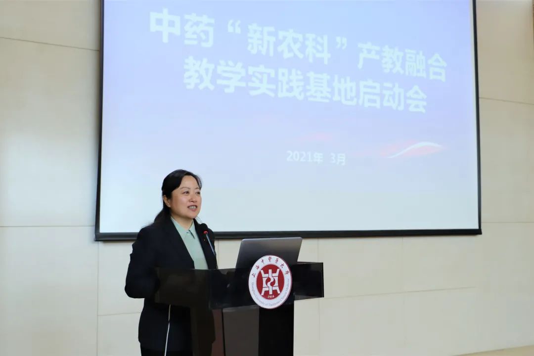 启动会上,舒静处长、徐宏喜院长、李琦副总经理相继致辞,表达了对新农科教学改革实践项目的支持。在与会嘉宾、师生的共同见证下,李琦副总经理与舒静处长一同为中药“新农科”产教融合教学实践基地揭牌。徐宏喜院长为李琦、朱光明、裴卫忠颁发“新农科”产教融合教学共同体专家聘书。