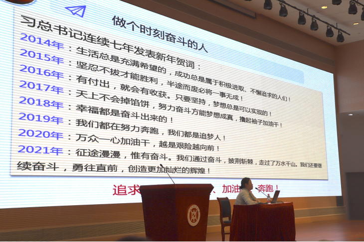 9月7日晚上,上海中医药大学收米直播 2021级全体新生在图书馆裙楼四楼报告厅进行新生教育系列活动——“书记第一课”。收米直播 党委书记沈岚为新生们做了题为“无奋斗,不青春——争做新时代中医药事业接班人”的主题讲座,将党史学习教育融入新生理想信念教育中,筑牢新生信念之基,把稳思想之舵,勇于担当作为,不负青春砥砺奋斗。