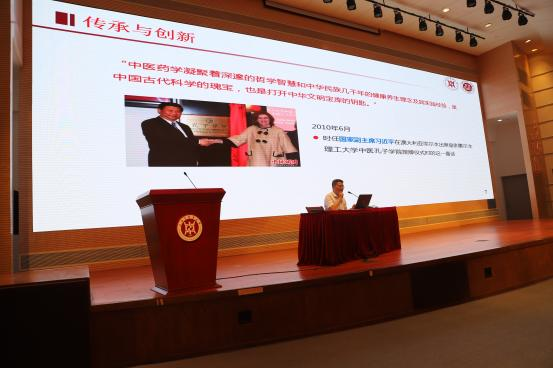 随后,张院长通过对《中医药法》的讲解,进一步阐述了传承精华、守正创新的内涵与意义,激励大家积极传承中医药文化并发掘其中的奥秘。同时,以青蒿素、常山碱丙素及三氧化二砷等药品研究为例,引导同学们只有做好传承,并不断创新,才能在专业领域实现新的突破,造福百姓健康。