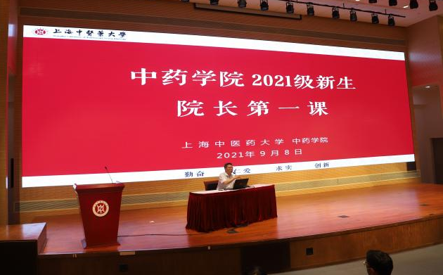 2021年9月8日晚上,上海中医药大学收米直播 新生季新生教育系列活动“院长第一课”在图书馆裙楼四楼报告厅举行,收米直播 院长张彤为收米直播 全体本硕博2021级新生作了题为“中药人的初心和使命”专题讲座。本次活动由收米直播 党委副书记王倩蕾主持,全体本硕博新生参与了本次活动。