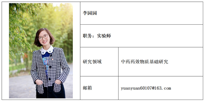 专长领域:主要围绕基于代谢组学技术的中药复方药效物质基础、中药复方多组分、多靶点整体药效作用机制方面和中药复方药代动力学的研究。