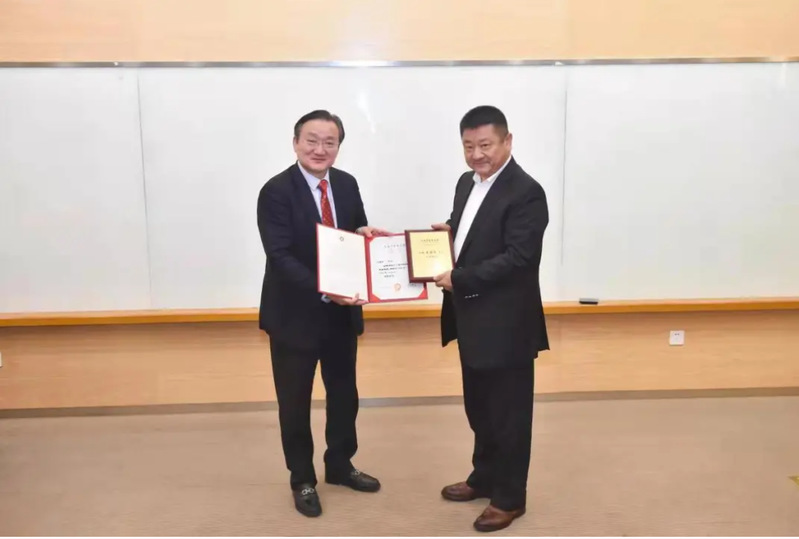 郭少辉向上海中医药大学教育发展基金会捐赠。徐建光向郭少辉颁发捐赠荣誉证书和感谢信。