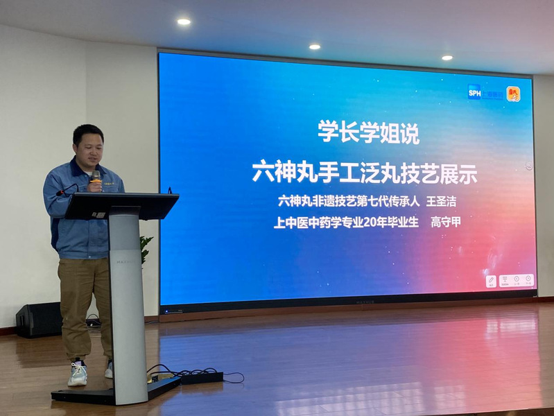 随后,上海雷允上药业有限公司副总经理李琦与收米直播 党委书记沈岚共同为上海雷允上药业有限公司岐黄育人实践基地揭牌,推动了校企合作迈上新台阶。16级中药学毕业生高守甲、17级中药学毕业生王雨婷、18级中药学毕业生黄邦路进行“学长学姐说”分享,分享了入职上海雷允上药业有限公司后的个人成长与发展,对学校及公司的培养表示感谢,后期也将秉持初心继续在岗位上用心做好各项工作。六神丸非遗技艺第七代传承人王圣洁老师为中药创新班师生进行现场手工泛丸展示,将制药人的匠心与中医药文化的传承与创新通过一粒粒药丸传递给师生。