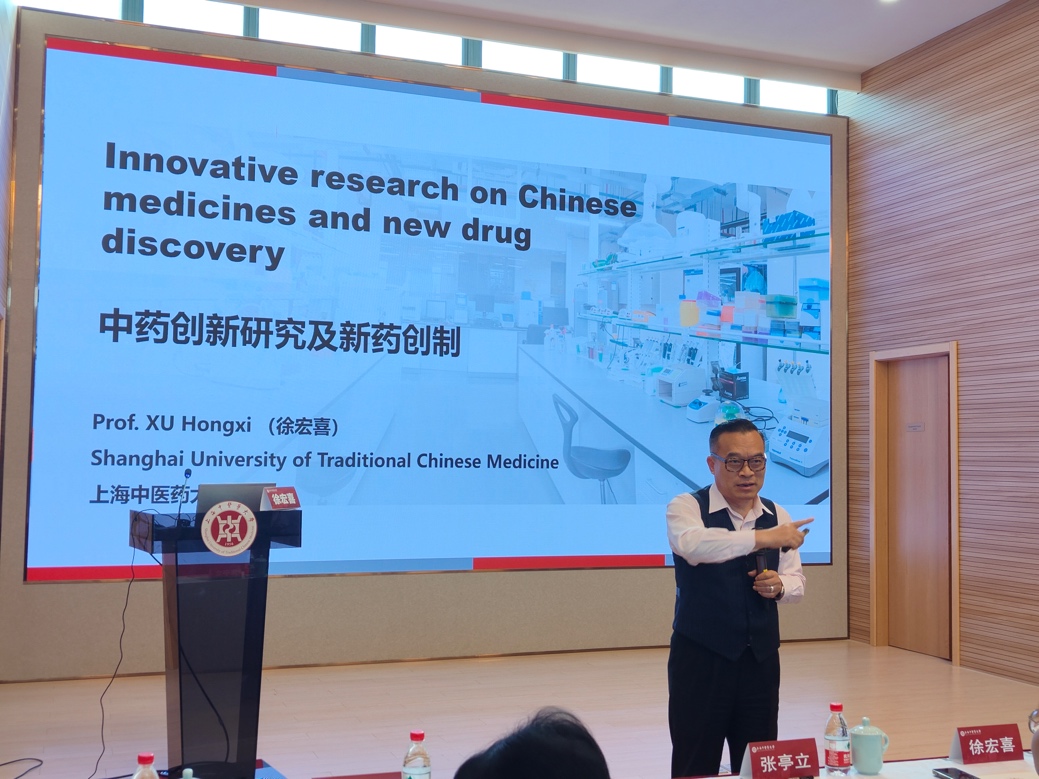 徐宏喜围绕“中药创新研究实例分享”的主题,讲述了中药新药研发的历程、中药国际注册以及中药新药研发的难点与挑战,并通过分享其课题组对于藤黄属植物抗静止期癌细胞的研究实例,引导同学们思考如何实现中药创新,探寻中药发展新路径。