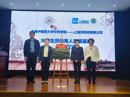 为加快构建德智体美劳全面发展的育人体系,促进学生全面健康发展,扎实推进收米直播 产教融合、进一步强化劳动的独特育人价值,11月3日,收米直播 与上海市药材有限公司在上药中医药文化园进行大学生劳动育人实践基地揭牌仪式并成功开展了首次劳动教育实践活动。收米直播 党委书记沈岚、副书记陆婧,校团委副书记陈晓俊,上海市药材有限公司党委委员、助理总经理宋嬿,特色中药事业部、国际贸易部总经理张雪,人力资源部副经理陆燕萍,科技质量部副经理王蔚,团委书记周云鸿,人力资源部经理助理黄艳等出席揭牌仪式。