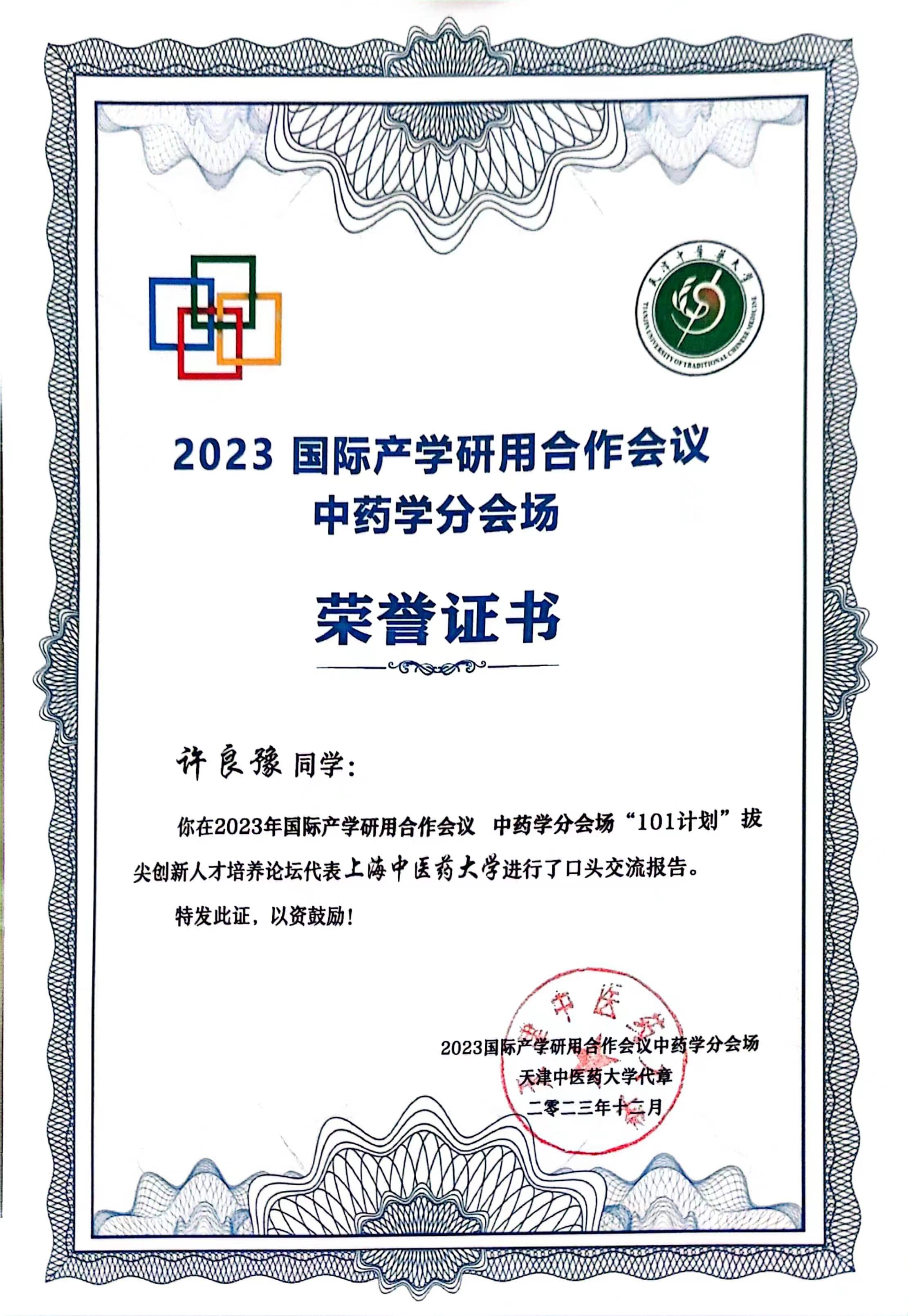 为响应教育部学校规划建设发展中心的相关工作要求,深入探讨拔尖人才培养中的关键问题,推动中医药事业的高质量发展,近日,2023国际产学研用合作会议中药学分会场在天津中医药大学举行,收米直播 名誉院长徐宏喜,副院长郑昌武、教务副主任郑敏与3名2023级中药学创新班同学分别参与主会场和“101计划”拔尖创新人才培养分论坛交流。
