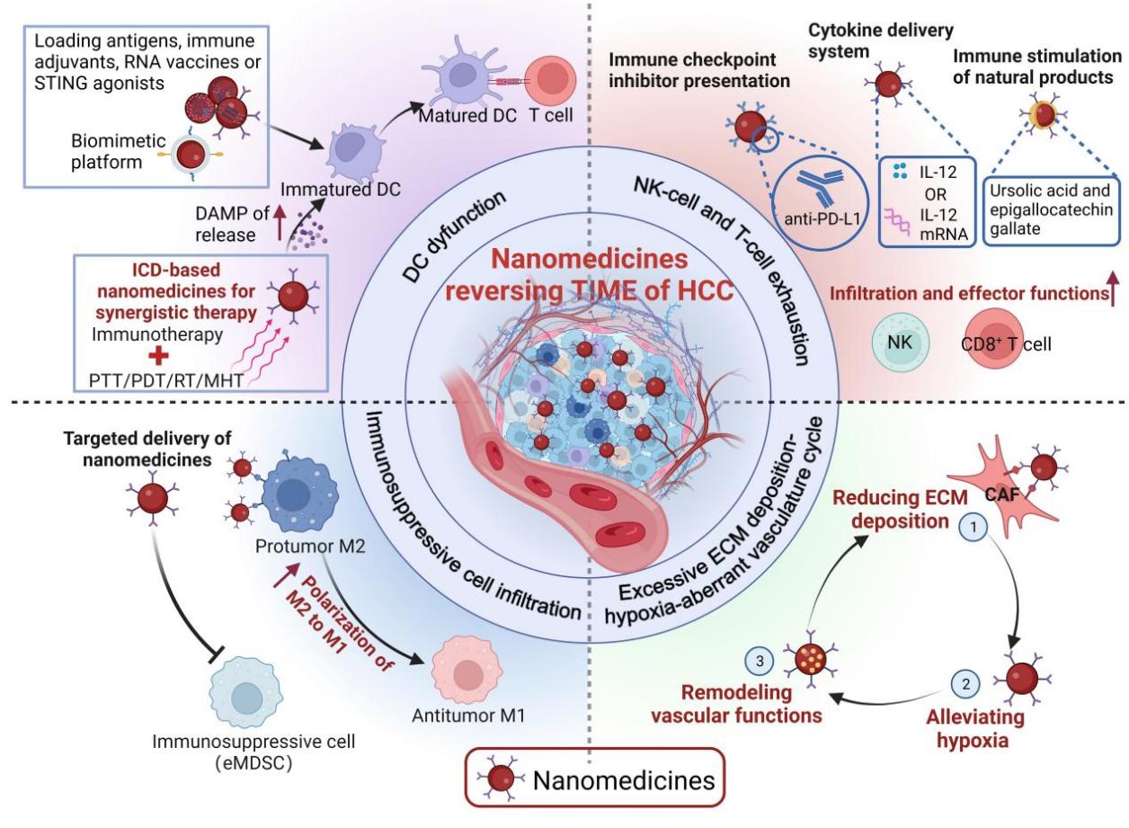 免疫检查点抑制剂等治疗策略在肝细胞癌的治疗中取得了一定的进展,但仍面临着有效反应率低和毒性大等挑战。HCC肿瘤免疫抑制微环境(tumor immunosuppressive microenvironment,TIME)导致大多数患者反应不佳,临床上缺乏精准递送的免疫疗法,进一步带来免疫相关毒性反应。纳米材料可通过靶向免疫疗法或多模式协同治疗重塑HCC中的TIME,从而增强抗肿瘤疗效并降低免疫药物的毒性,已成为癌症治疗颇有前景的新兴策略。该综述首先阐明了肝细胞癌TIME的主要特征,其次总结了纳米药物提高HCC免疫治疗效率的主要策略,重点关注了免疫治疗如何结合纳米材料逆转HCC中的TIME,最后对纳米技术应用于免疫治疗的潜在挑战和机遇进行了展望,旨在促进更高效和安全的肝癌免疫治疗策略。