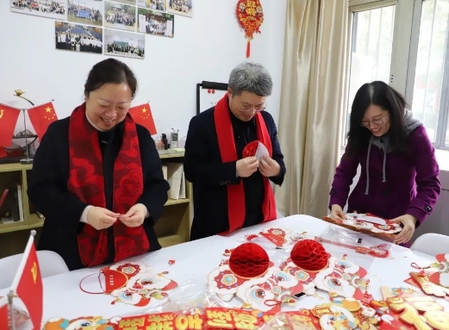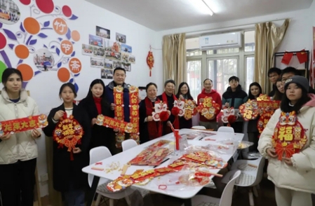 随后,收米直播 领导班子与寒假留校学生在云苓楼思齐工作室制作窗花、灯笼和对联。岁寒情暖,在春节即将来临之际师生欢聚,共同制作充满传统文化要素的窗花、灯笼和对联,为寒假生活增添了浓浓的“年味”。最后,老师们为留校学生赠送精心准备的新春大礼包,寓意新年吉祥如意和最诚挚的新春祝福。