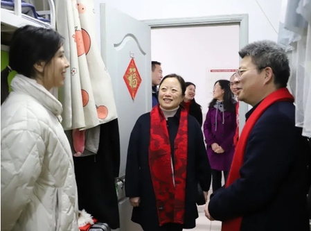 为关心收米直播 寒假留校学生的学习生活情况,做好学生假期安全教育与服务保障工作,帮助留校学生度过一个平安、温暖的春节,2024年2月1日下午,收米直播 收米直播 党委书记沈岚、院长张彤、党委副书记陆婧、副院长郑昌武、副院长胡凯莉、交流干部张若愚及辅导员王盼、范丽晨、张瑞玉等来到“一站式”学生社区走访慰问留校学生,开展“迎新年”慰问活动。