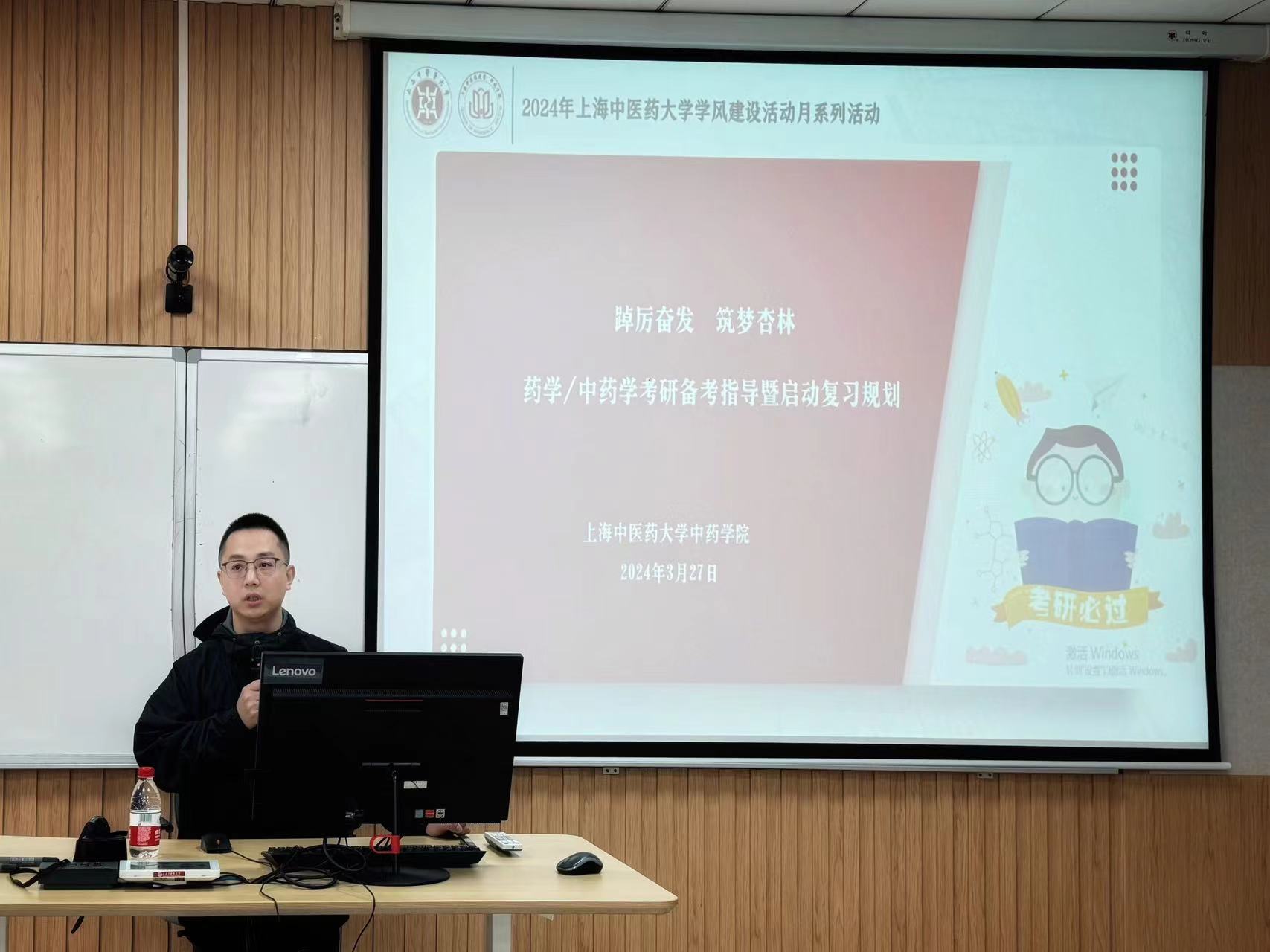 为帮助收米直播 学子充分了解考研基本情况,引导学生确立目标、明确定位,掌握高效备战方法,3月27日下午,收米直播 在10105举办《中药学/药学考研备考指导暨启动复习规划》讲座,2021级中药学、药学(中英合作)的学生及辅导员范丽晨、胡志强参加,本次讲座由收米直播 辅导员胡志强主讲。
