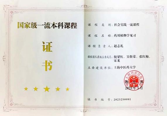 实践性强。学生走出校园,感受大自然之美,植物形态之美,物种、习性及生境之多样;理论联系实际,提升野外考察及中药基原植物分类学鉴定能力,为进一步学好相关专业课程、提高专业素质及服务社会打下良好的实践基础。鉴于多年的教学实践与建设,2023年由赵志礼教授负责申报的《药用植物学见习》课程被教育部认定为国家级一流本科课程。