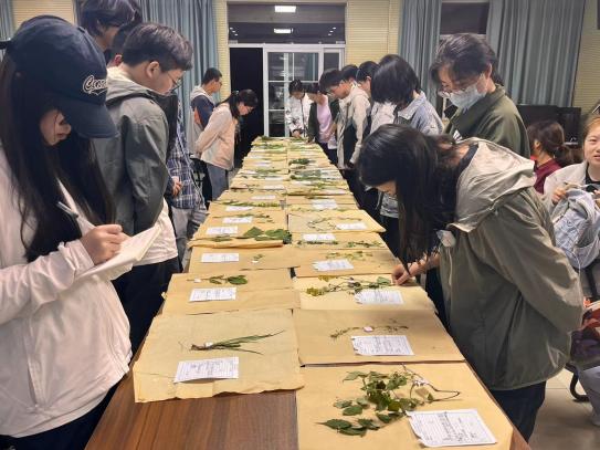 在采药归来后,同学们分组对采集的标本进行处理和复习,先是将标本进行排序,然后依次介绍每种植物的详细特点和功效。同学们相互传递标本,相互观察、相互介绍、相互讨论,并将每一株的特征及时记录下来。最后便把标本进行压制,充分吸收植物中的水分以便保存,同学们对植株的印象又加深了一层。最后,各个小组间进行交流学习,互相介绍自己组自己的植物。同学们热情地参与到各个环节中,每个人都留下了深刻的记忆。