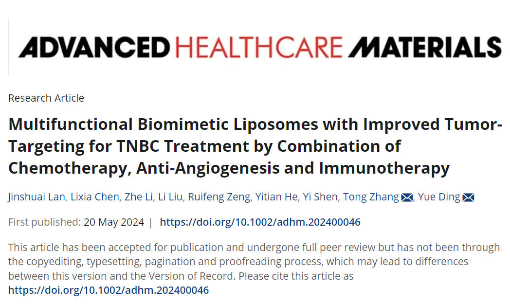 近日,院张彤教授/丁越研究员团队基于中医“扶正祛邪”抗肿瘤理论与现代仿生纳米递药技术,研究开发了肿瘤细胞膜包覆的共载藤黄酸(GA)与人参皂苷Rg3Rg3)仿生纳米系统(G/R-MLP),旨在通过肿瘤细胞介导的同源靶向和Rg3糖链上葡萄糖基介导的葡萄糖转运蛋白靶向的双重靶向优势,提高Rg3GA协同抗三阴性乳腺癌作用,为乳腺癌治疗提供了有效策略。研究成果Multifunctional Biomimetic Liposomes with Improved Tumor-Targeting for TNBC Treatment by Combination of Chemotherapy, Anti-Angiogenesis and Immunotherapy在生物医学材料领域权威学术期刊Advanced Healthcare Materials上发表。