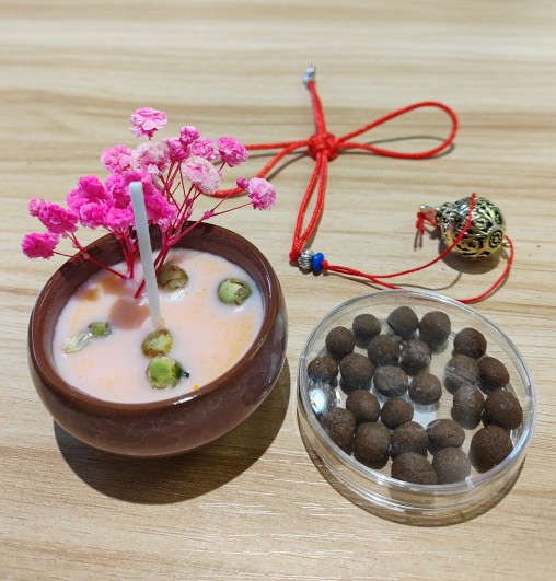 芳香中草药的香气会通过口、鼻、皮毛等孔窍进入体内以调节气机、疏通脏腑经络体系,增强抗病能力。山茶花四季常青就算是在严寒之季亦可开花通常花期恰逢中国农历春节因此在中国古代山茶花被视为吉祥繁荣的象征常被用于节庆和祭祀活动将花瓣与蜡烛相结合制作成香薰烛,在燃烧蜡烛的过程中,体验山茶花特有的芬芳,给同学们带来心灵上的抚慰。