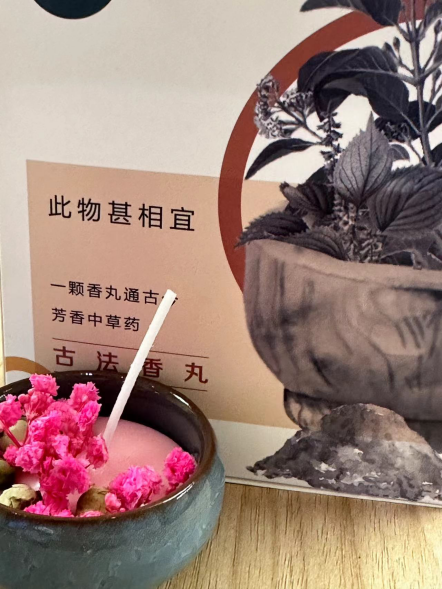 香丸源于中医的蜜丸是在中医熏蒸疗法的理论基础上延伸出来的中医治疗方法的生活化体现。“香”是纯阳之性特别是香药调和成的香丸因没有烟火的燥热其补足正气祛除邪气防病养生的效果最佳本次制作的香丸中,主要包含了陈皮、紫苏、檀香以及艾草。陈皮药性温和,不仅能理气健脾、燥湿化痰,还能调中、止痛,其香味浓郁持久。紫苏是解表散寒、行气和胃的良药,具有抑菌、解热、抗炎和抗氧的药理作用。檀香具有行气止痛、散寒调中的功效,此外还具有一定的抗菌和镇静安神的功能。艾草香味浓烈,全草可以入药,端午素来有挂艾草的寓意,用于驱虫杀菌,祛邪避害,祈福纳吉。
