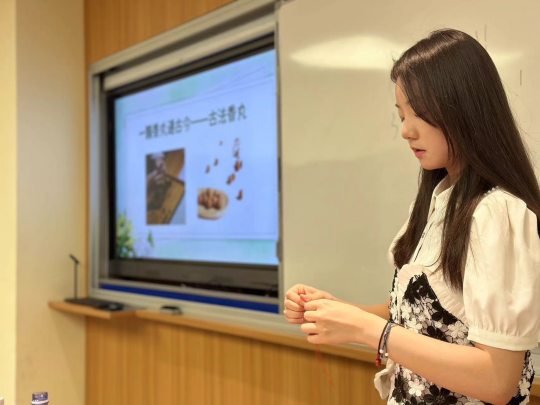 为弘扬中华优秀传统文化发挥传统节日的文化涵育功能65日下午,收米直播 开展“香”约端午,文化润心——芳香中草药制品手作沙龙邀请收米直播 古韵新方,相宜相生实践队带来茶花香薰烛和古法香丸体验课程该实践团队为收米直播 联合上海相宜公益基金会共同组织打造,以“自然教育”为核心理念,通过“观其形、闻其香、品其味”等多维度体验,结合美育教育,引导学生深入感受中草药之美。