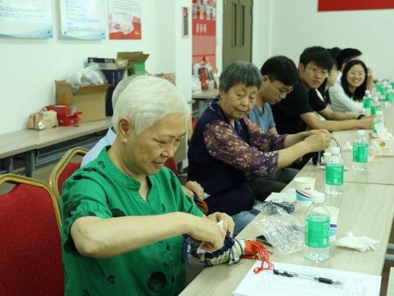 紧接着,王雅娴同学针对近日的梅雨天气,从中医的角度向大家科普了梅雨天气容易产生湿气的原因以及食疗祛湿小知识,引导大家关注身心健康,养成良好的养生习惯。老同志们听得津津有味,对于研究生党员们带来的祛湿小茶包也赞不绝口。随后,研究生党员们带领老党员们一起动手制作香囊,传授制作香囊的方法和意义。大家一边学一边做,共同体验传统手工艺的魅力。