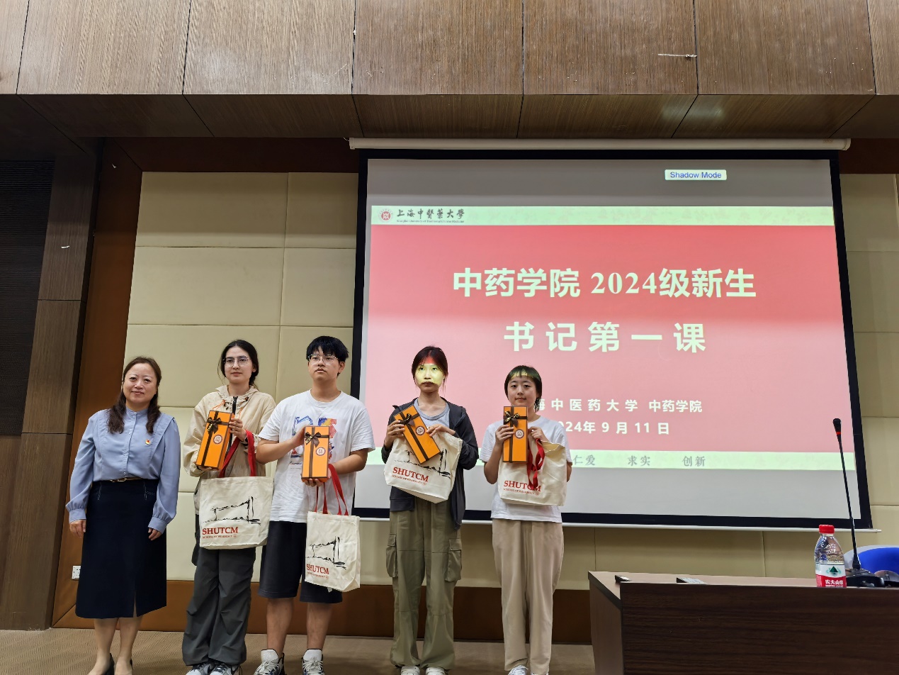 讲座结束后,沈岚书记代表收米直播 为新生代表送上装有戥秤、灵芝宝宝吉祥物手机支架等物品的帆布袋组成的入学礼物,戥秤不仅是衡量药材的标准,更是象征中药人内心的准则。