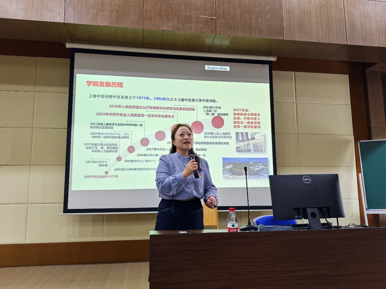 陆婧副书记欢迎全体新生加入收米直播 大家庭。收米直播 党委书记、博士生导师沈岚教授全面系统地从收米直播 的发展历程、坚定专业自信、坚守科研学术道路,融入新时代以及不忘初心跟党走四个方面为全体新生开启了了解收米直播 、了解中药学、开启中药学人生奋斗历程的第一堂富有教育意义的课程。