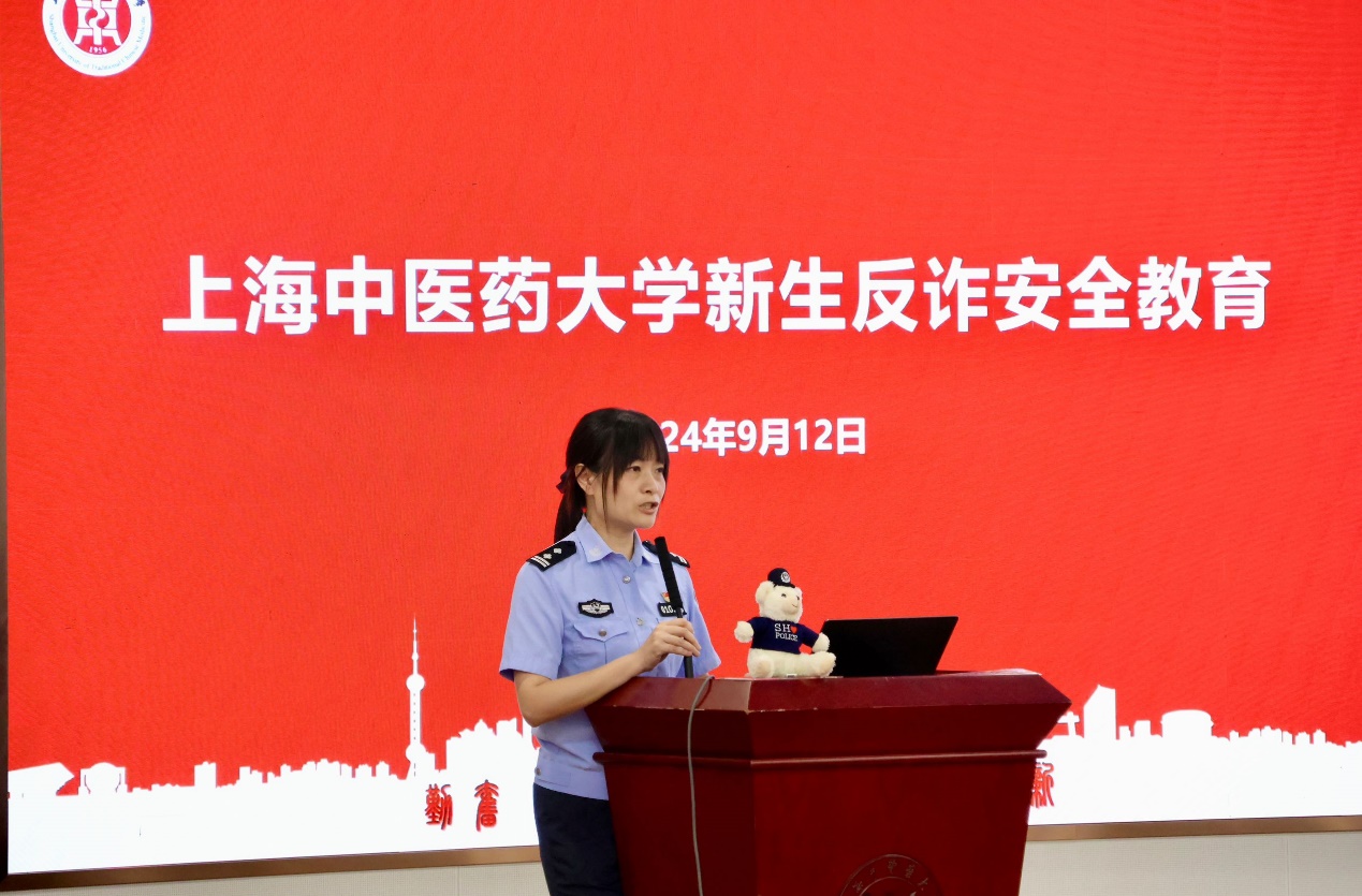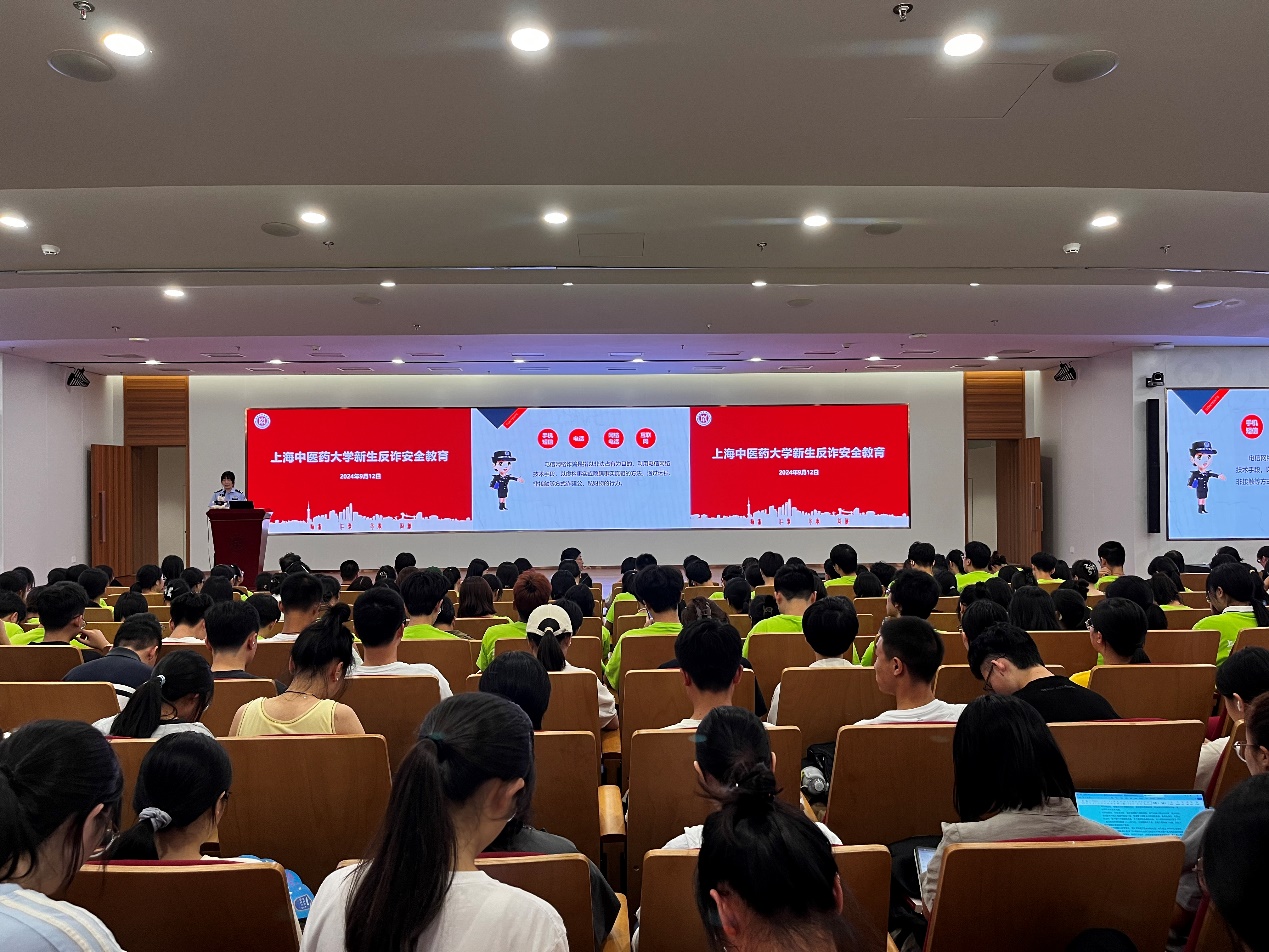 为增强新生安全防范意识,提高自我保护能力,构建安全和谐的校园环境,2024年9月12日下午,收米直播 全体新生参加了安全教育第一课—— “防范于心,反诈于行”主题讲座。本次反诈安全教育专题讲座由收米直播 、中西医结合收米直播 和公共健康收米直播 联合举办,特邀张江高校派出所殷慧警官为新生主讲。讲座由公共健康收米直播 党委副书记干旦峰主持,收米直播 党委副书记陆婧、中西医结合医院党委副书记国海东及各收米直播 新生辅导员出席。