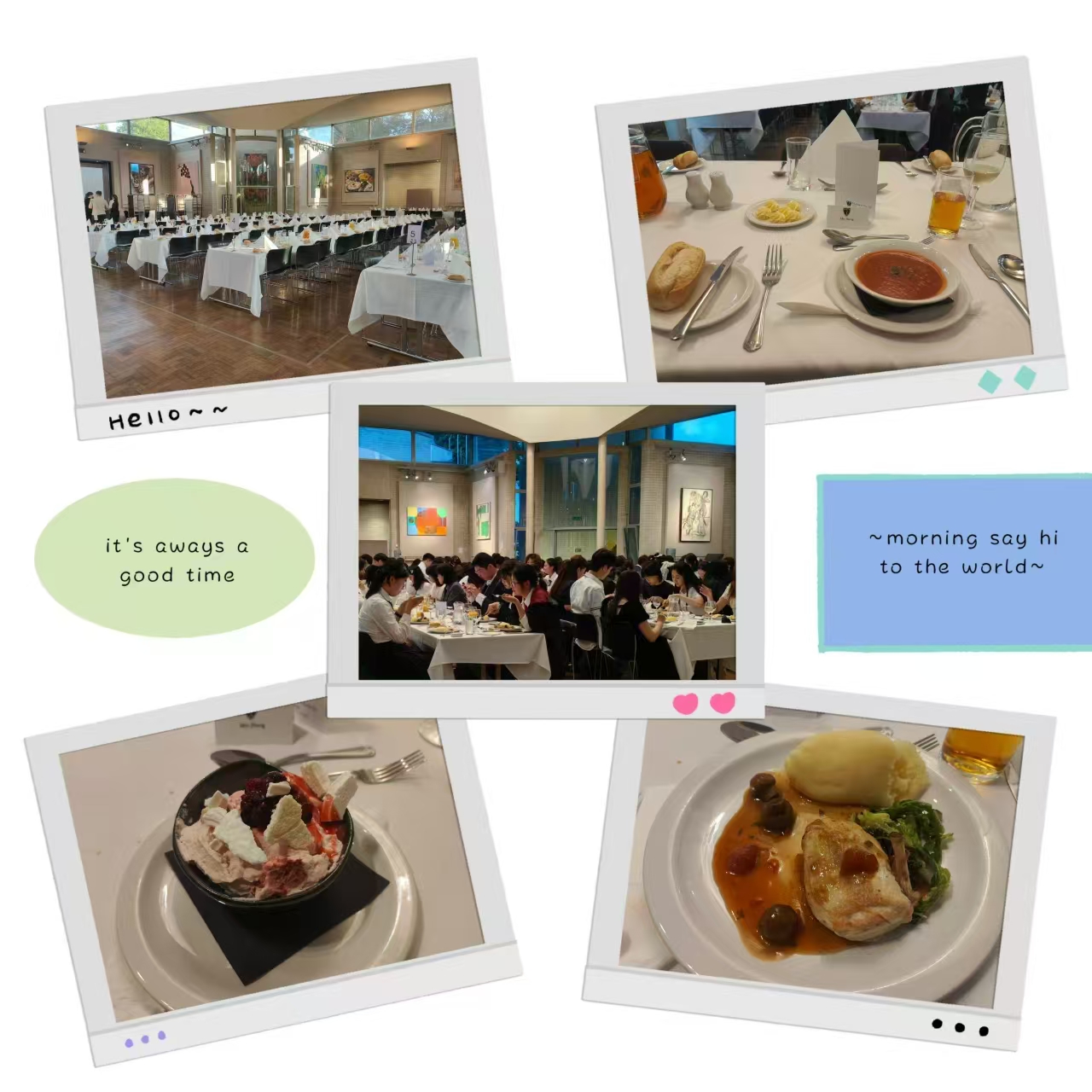 Formal dinner是英国大学独特的社交活动。返程前的最后一晚,同学们都一改平常的休闲风,男生穿起了正装,系上了领带;女生都穿上了精心准备的衣裙,盛装出席。现场庄重而优雅的环境、整齐划一的餐具摆放、晚宴开始前主持人的拉丁文祝祷,无不体现了浓厚的仪式感。同学们在享受美食的同时推杯换盏,谈笑风生,深度体验英国的传统文化风俗。Formal dinner为此次访学之旅画上了圆满的句号。
