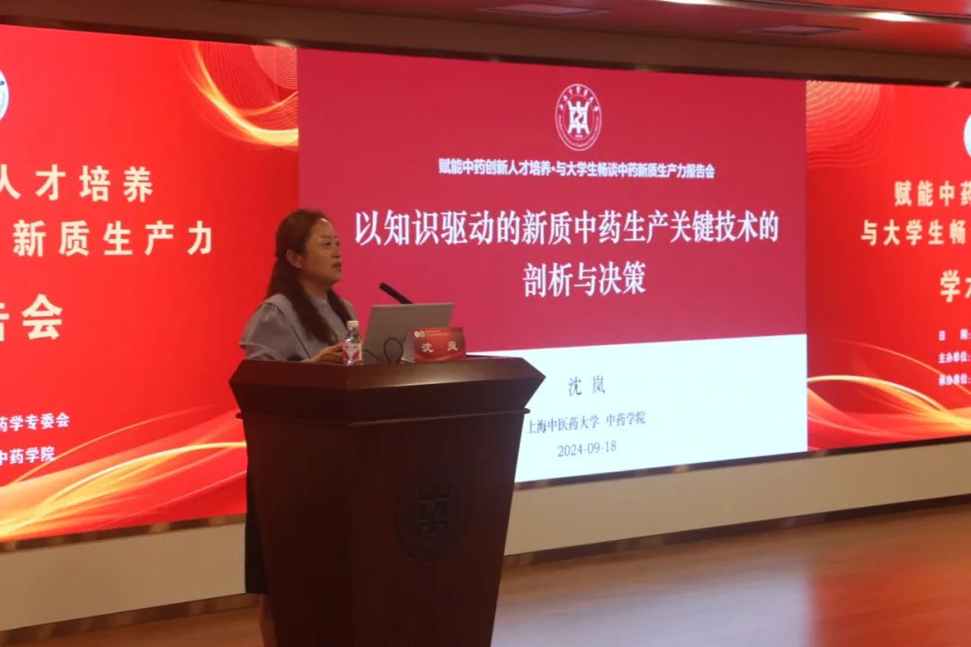 在学术报告环节,上海药物所研究员甘勇以《药物载体理性设计及创新制剂的探索与实践》为题,从创新药物的难点出发,深入浅出地讲述了其团队基于关键物理属性的纳米药物载体设计研究与成果,并分享了3个创新药物制剂转化的实例。随后,上海市药学会中药学专委会主任委员、上海中医药大学收米直播 党委书记沈岚进行了题为《以知识驱动的新质中药生产关键技术的剖析与决策》的报告,系统地介绍了QbD理念的起源与发展,以及在中药制剂中的应用;基于中药制剂研发与生产中的问题,引入专家系统,并以具体实例阐述了专家系统在处方设计及制剂全生命周期质量控制中的应用。精彩的报告吸引了与会的专家和师生,现场讨论热烈。