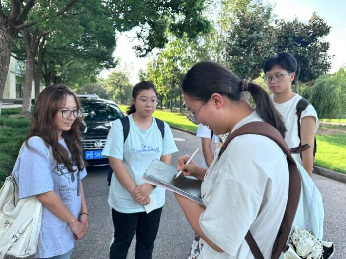 活动在操场、体育馆、百草园等精心布置了5个任务打卡点。活动以定向越野为基础,巧妙融合了国庆元素和团队建设任务,通过设置“二十届三中全会知识接力答”“找相同角度”“你画我猜”等多个环节,不仅考验了参与者的体能与智慧,更在轻松愉快的氛围中加深了大家对知识的理解和认同。同学们手持地图,以满腔的热情和昂扬的斗志,踏上了这场集智慧、体力与团队精神于一体的探索之旅。