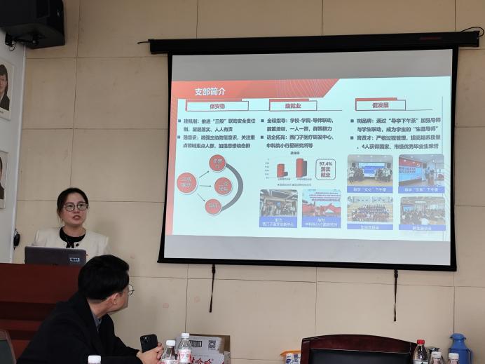党建工作交流环节结束后,收米直播 研究生第二党支部副书记和宣传委员向与会者简要介绍了收米直播 研究生的科研进展和就业前景,进一步加深了大家对研究生培养与党建工作融合的理解。
