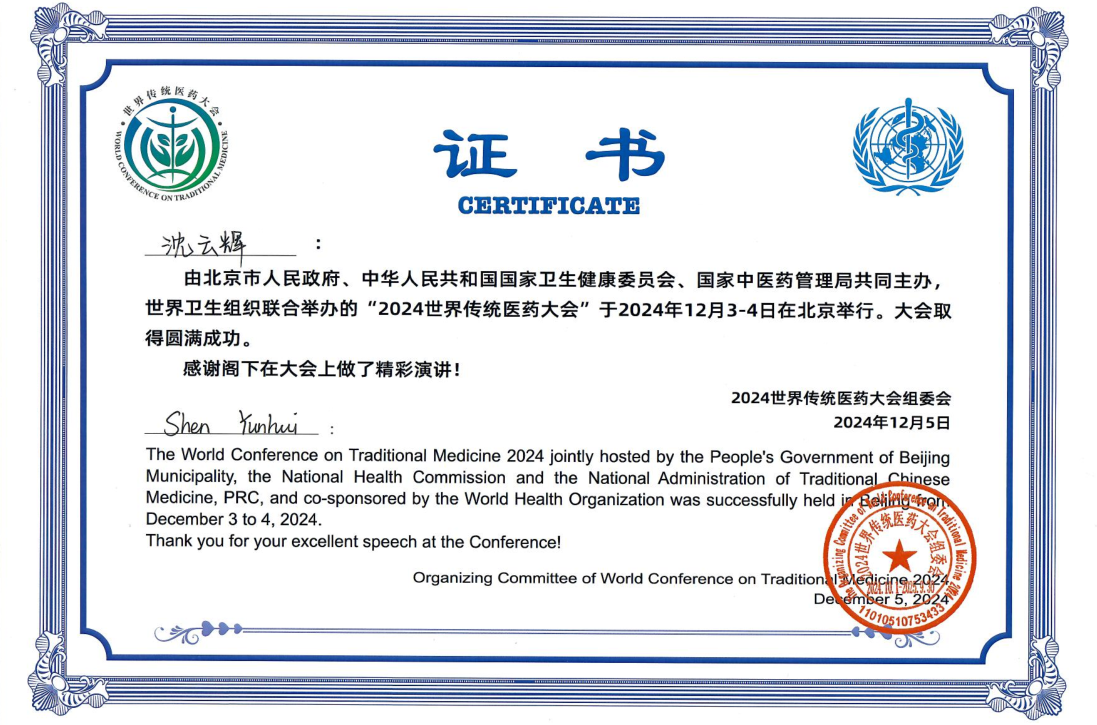 沈云辉老师目前借调在世界卫生组织传统、补充与整合医学处担任技术官员,承担草药监管联盟秘书处及传统医药产品相关工作,为促进传统医药领域的国际交流与合作,中医药的国际传播和现代化发展贡献智慧和力量。是我校建设世界一流中医药大学,培养具有国际视野的中医药人才的具体实践。