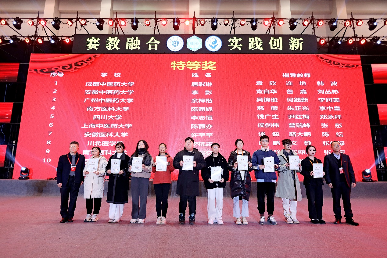 比赛分为理论考试和实验操作两部分,经过一天的激烈角逐,我校学生沉稳发挥,从近300名学生中脱颖而出,2022级中药学专业学生陈薇亦获特等奖,龚佳龄获一等奖。