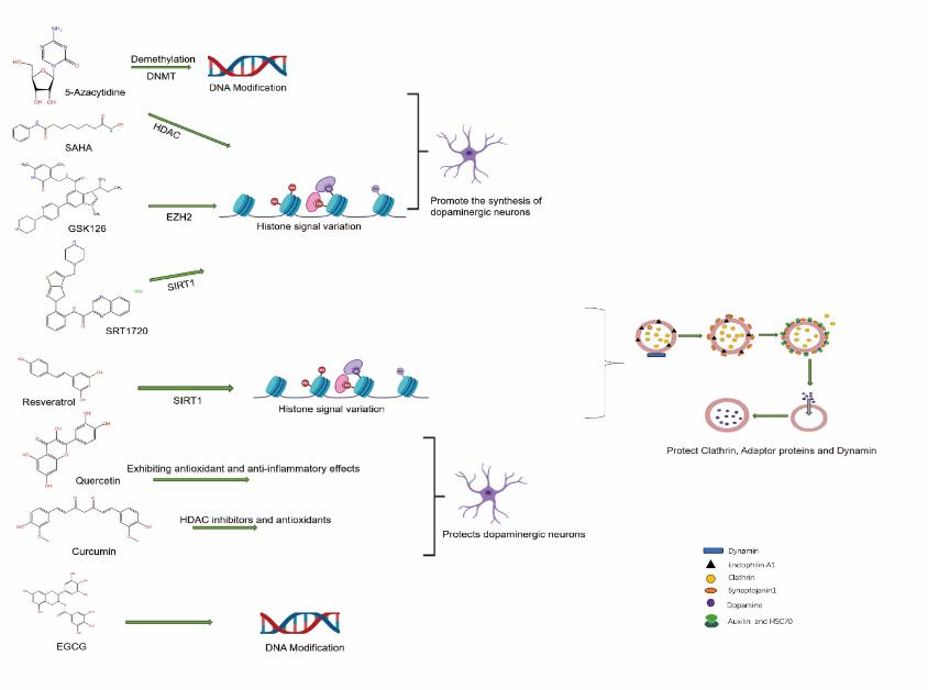 图:部分小分子抑制剂通过表观遗传机制调控DAT内吞过程中关键受体或靶点