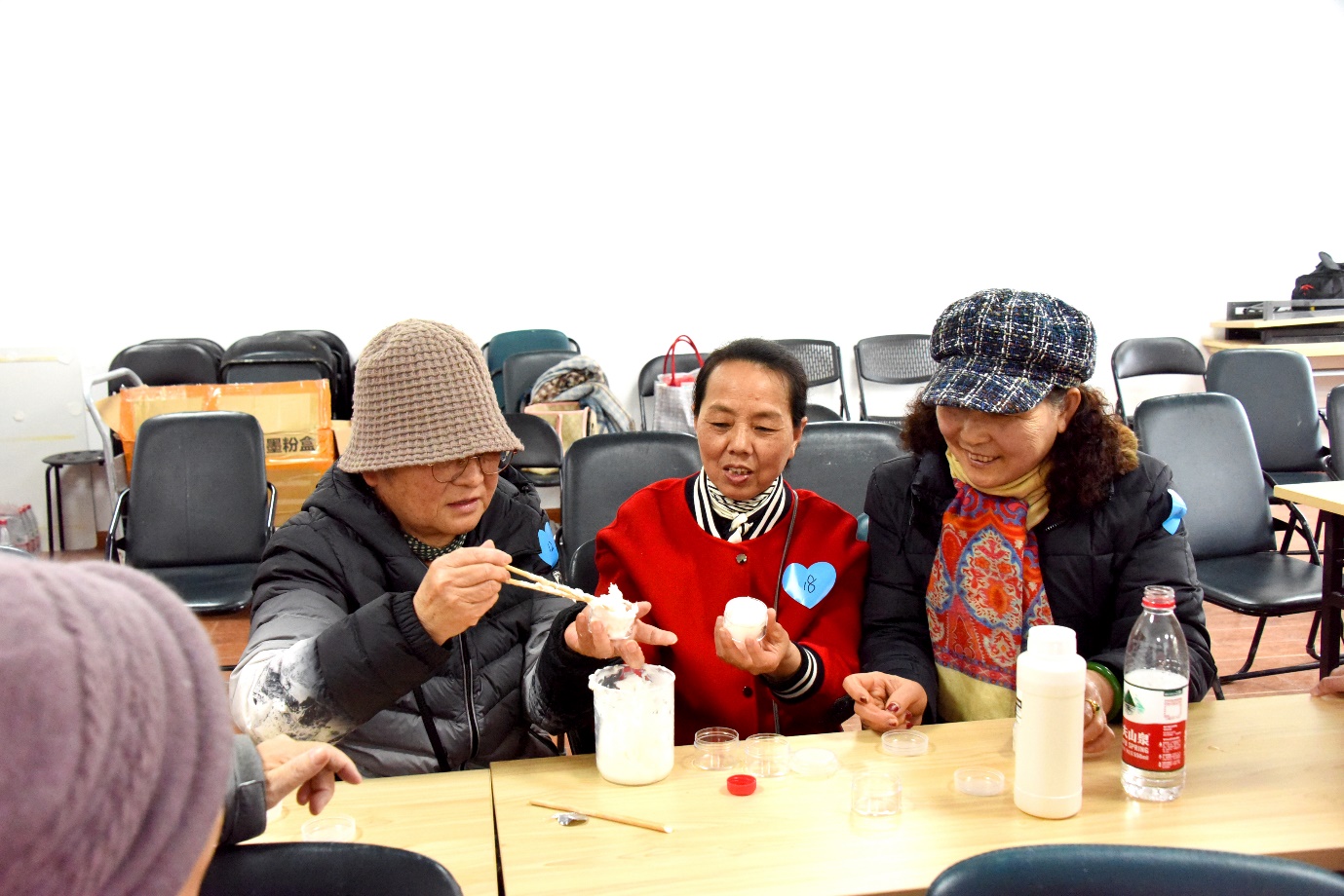 与此同时,收米直播 研究生党员和候诊的老人们开启了专场的DIY护手霜活动。橄榄油、甘油、乳化剂、水等原料,在学生党员的带领下,严谨、认真的叔叔阿姨成功制作了护手霜,也见证了水乳乳化融合的神奇现象,轻轻涂抹在手上时,一张张洋溢着成就感的笑脸,灿烂又温暖。