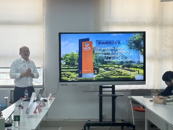 为提升收米直播 学生国际视野,培养守正创新、中西融通的复合型药学人才,帮助学生更好地适应就业形势的变化,满足学生多元化的升学需求,2025年3月26日,收米直播 邀请新加坡国立大学(NUS)药理系为收米直播 学生开展出国留学讲座,为有留学意向的同学提供专业化、有针对性的指导,介绍解读其医学药理学硕士(MSc in Medical Pharmacology)的培养逻辑与职业发展支持。这一项目旨在培养学生在药理学、毒理学、监管科学及药理学教育领域的专业能力,以药理学创新,驱动未来医学发展。讲座由新加坡国立大学(NUS)药理系前系主任、PI Prof. Fred Wong,硕士研究生项目招生办主任(中国区)Associate Prof. Lingzhi Wang,硕士研究生助理专员Ms Lu Fan主讲,收米直播 院长张彤、党委副书记陆婧、副院长郑昌武出席。