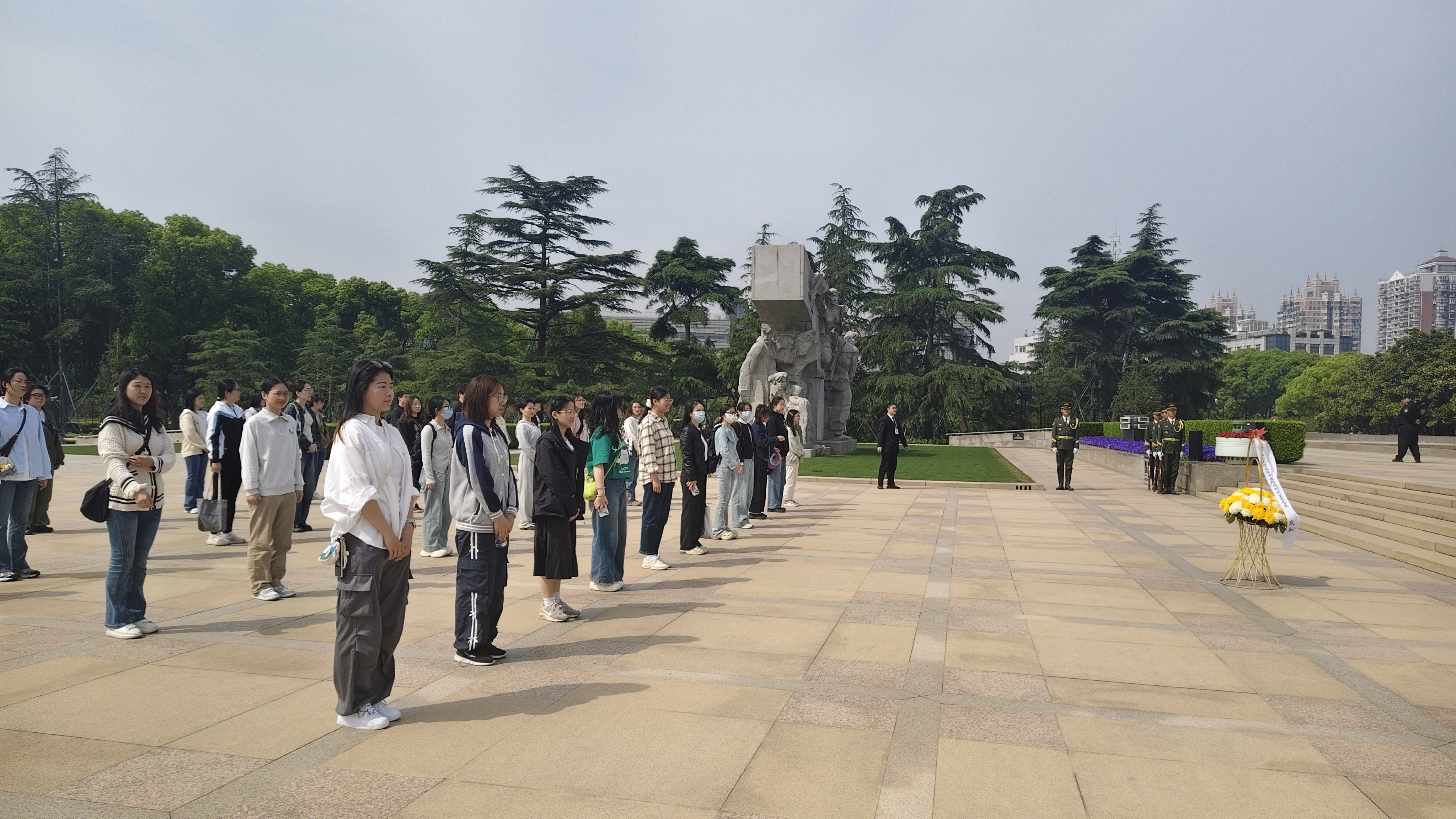 首先,全体党员在陵园入口处庄严列队,于“丹心碧血为人民”纪念碑前肃立默哀并敬献花篮,深切缅怀为民族独立与人民解放献出生命的革命英烈。