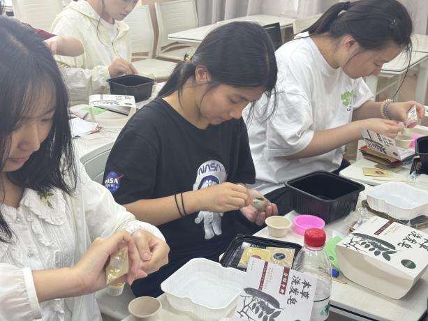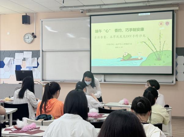 在实践团队成员的带领下,同学们首先开始了香囊的制作。由五色丝线刺绣而成、形态各异的香囊圆袋被置于桌上,在其中填入棉花以及中药香包,将香囊上的绳带一抽一拉,再系上一个寓意吉祥的平安结,一个精巧圆润的香囊便跃然手上。在香囊的馥郁芬芳中,同学们的心灵得以放松。这些由同学们亲手制作,承载着“驱邪避秽”美好寓意的香囊,最后被放置在礼盒中,将跨越群山,跟随实践团的脚步,送往彩云之南,为云南的小朋友们送上最诚挚朴素的祝愿。香囊自此成为了一道靓丽的纽带,跨越了时空,以芳香将人们连结起来,让情感不再因距离而稀释,让祝福不再因时间而褪色。