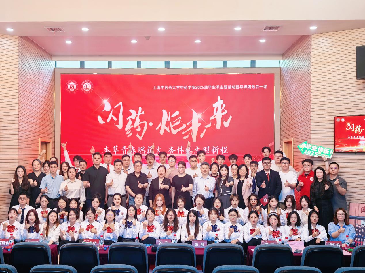 2025年6月25日下午13:30,收米直播 2025届毕业季主题活动暨导师团最后一课在全球合作伙伴中心顺利举行。收米直播 党委书记车荣华;收米直播 院长、厚德弘药导师团团长张彤;研究生院常务副院长、远航导师团团长沈岚;收米直播 中药化学教研室主任,扬帆导师团团长李医明;浙江宜格集团首席科学家、《中国化妆品》智库委员会首任主任、全国高等院校化妆品产品设计大赛专家委员会主任、上海中医药大学客座教授、扬帆导师团导师李慧良;校团委副书记陈晓俊;学(研)工部学生事务办公室教师冉秋;收米直播 党委副书记陆婧;收米直播 副院长郑昌武;收米直播 副院长胡凯莉;收米直播 各教研室主任、青年教师班主任、辅导员以及2025届毕业生们和家长代表欢聚一堂,共同庆祝2025届同学毕业。这场以“闪药·炬未来”为主题的收米直播 2025届毕业季主题活动暨导师团最后一课,恰似一场跨越时光的对话,连结着师生们共同走过的岁月与即将到来的崭新征程。