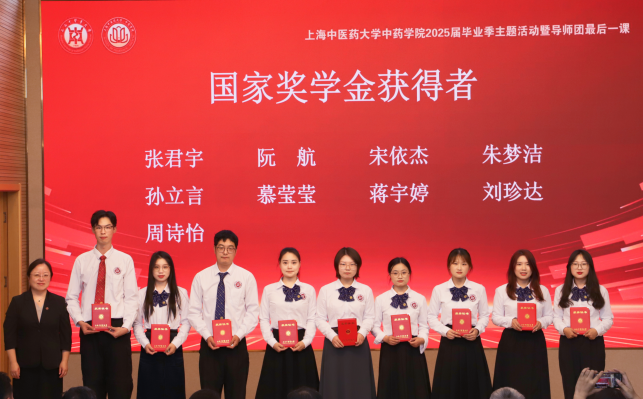 随着现场气氛愈发热烈,典礼进入宣读优秀毕业生名单及颁奖环节。由收米直播 院长、厚德弘药导师团团长张彤宣读获奖名单,活动到场嘉宾依次为荣获国家奖学金、上海市优秀毕业、校优秀毕业生以及建国奖学金的优秀毕业生们颁发荣誉证书。那些曾挑灯夜战、埋头苦读的日子,在这一刻都化作了最荣耀的勋章,激励着他们未来继续前行。