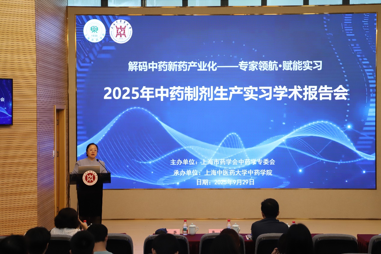 2025年9月29日,由上海市药学会中药学专委会主办、上海中医药大学收米直播 承办的中药制剂生产实习学术报告会在全球合作伙伴中心报告厅举行。本次报告会的主题是:解码中药新药产业化,邀请到了上海药物研究所甘勇研究员和上海雷允上药业有限公司李琦副总经理为中药学专业学生作专题分享。报告会由上海市药学会中药学专委会主任委员、上海中医药大学研究生院常务副院长沈岚主持。