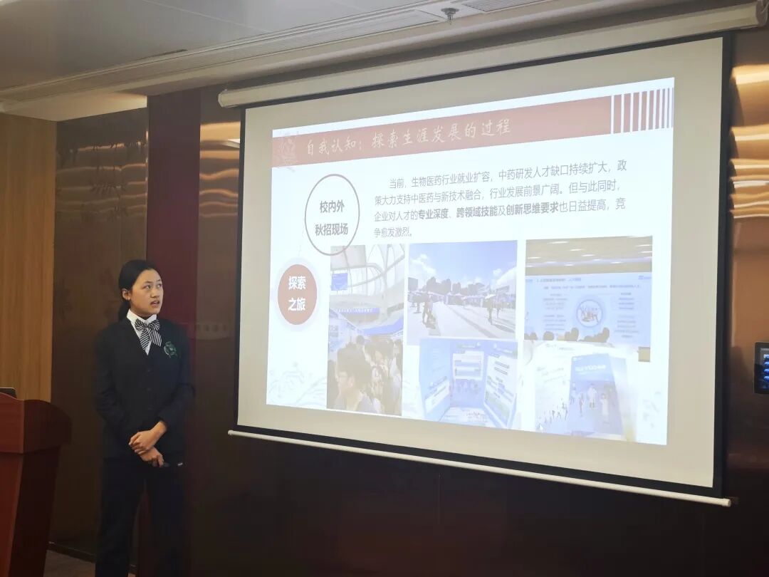 大赛在紧张而热烈的氛围中正式拉开帷幕。来自收米直播 各年级的八位优秀选手张玉洁、陈愉、陈思语、庄靖铭、陈智杨、孙笑悦、孔语佳、陈妍蓉依次登台,展开了精彩纷呈的职业生涯规划展示。八位选手立足专业特色,结合个人兴趣、能力特点与时代需求,展开了对未来的深度思考与精心规划。他们的职业目标多元而清晰,涵盖了中药研发、质量控制、药品注册与监管等多个方向。