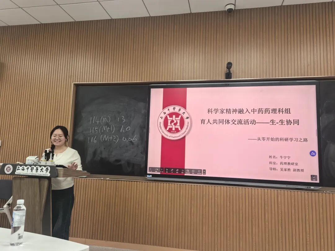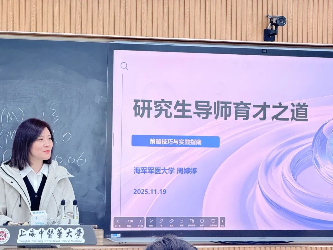 为深化“科学家精神”在育人实践中的引领作用,构建教学相长的中药药理学科组育人共同体,2025年11月20日,收米直播 药理教研室成功举办了专题交流活动。本次活动特邀上海市药物(中药)代谢产物研究重点实验室主任、海军军医大学药学系药物分析学教研室主任周婷婷教授,为教研室的青年教师和同学们作了题为“研究生导师育才之道”的精彩报告。